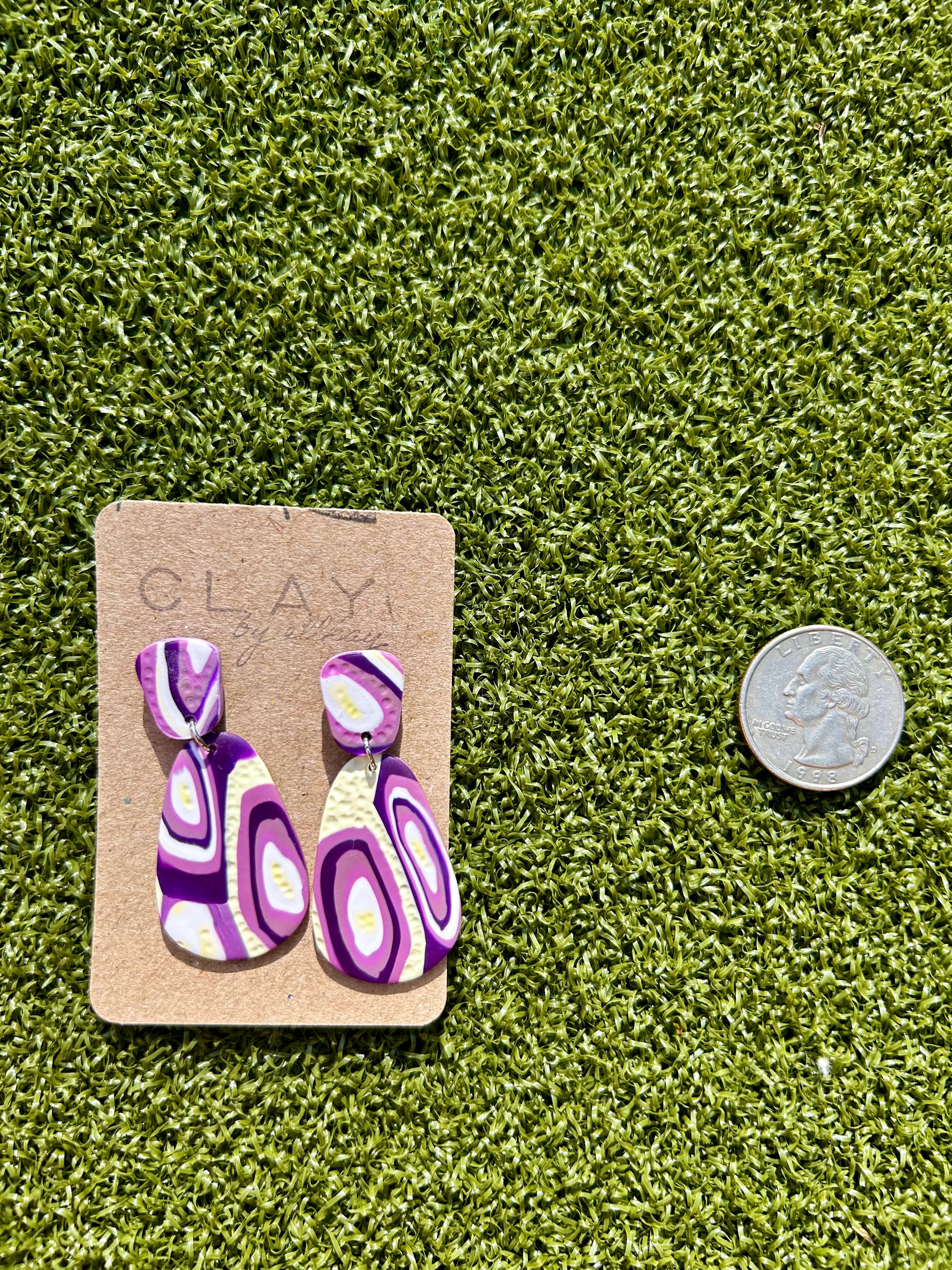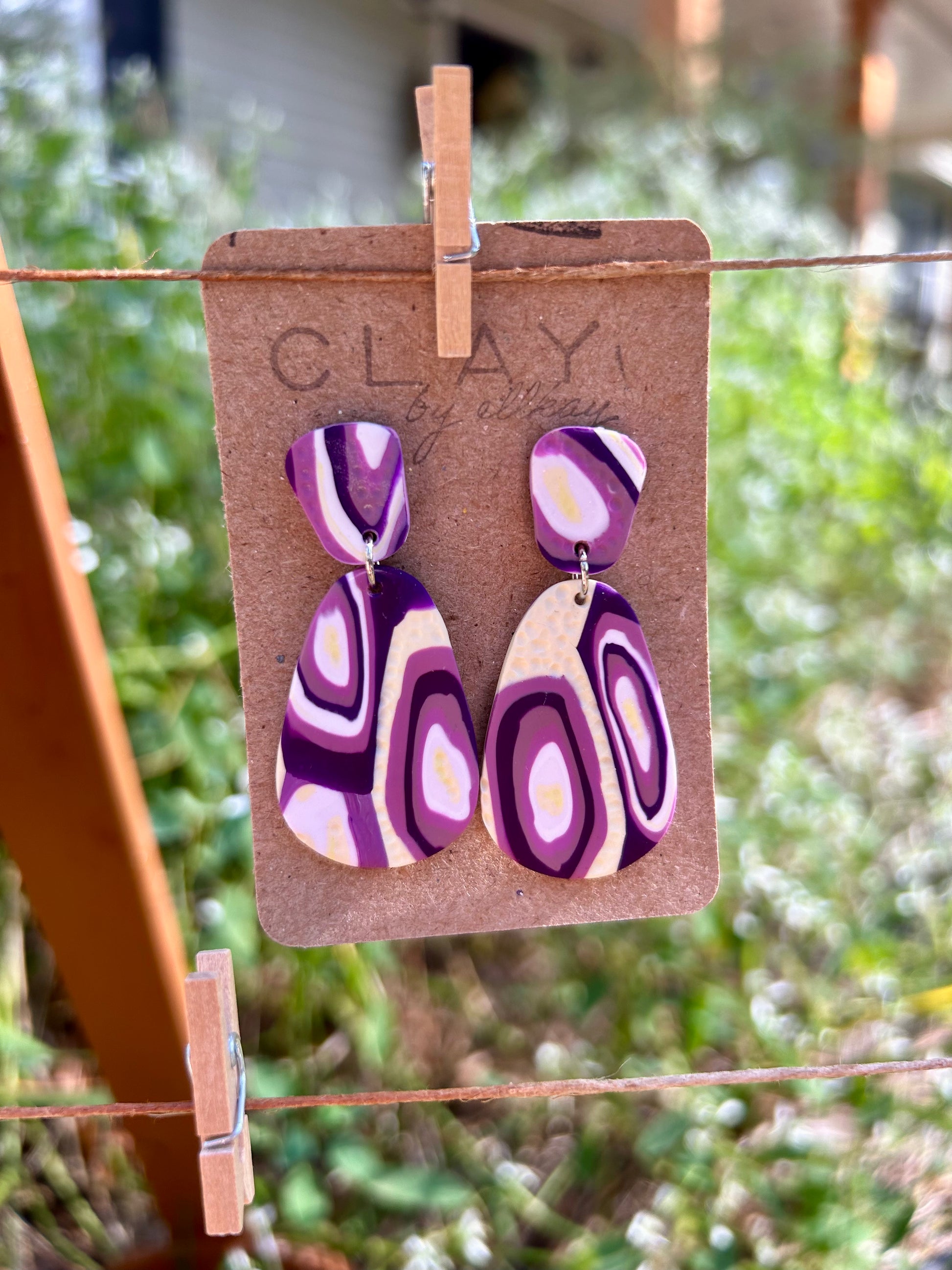 The LAYERS Collection - a funky retro pattern of purples, yellows, and white with hand-stamped texture.